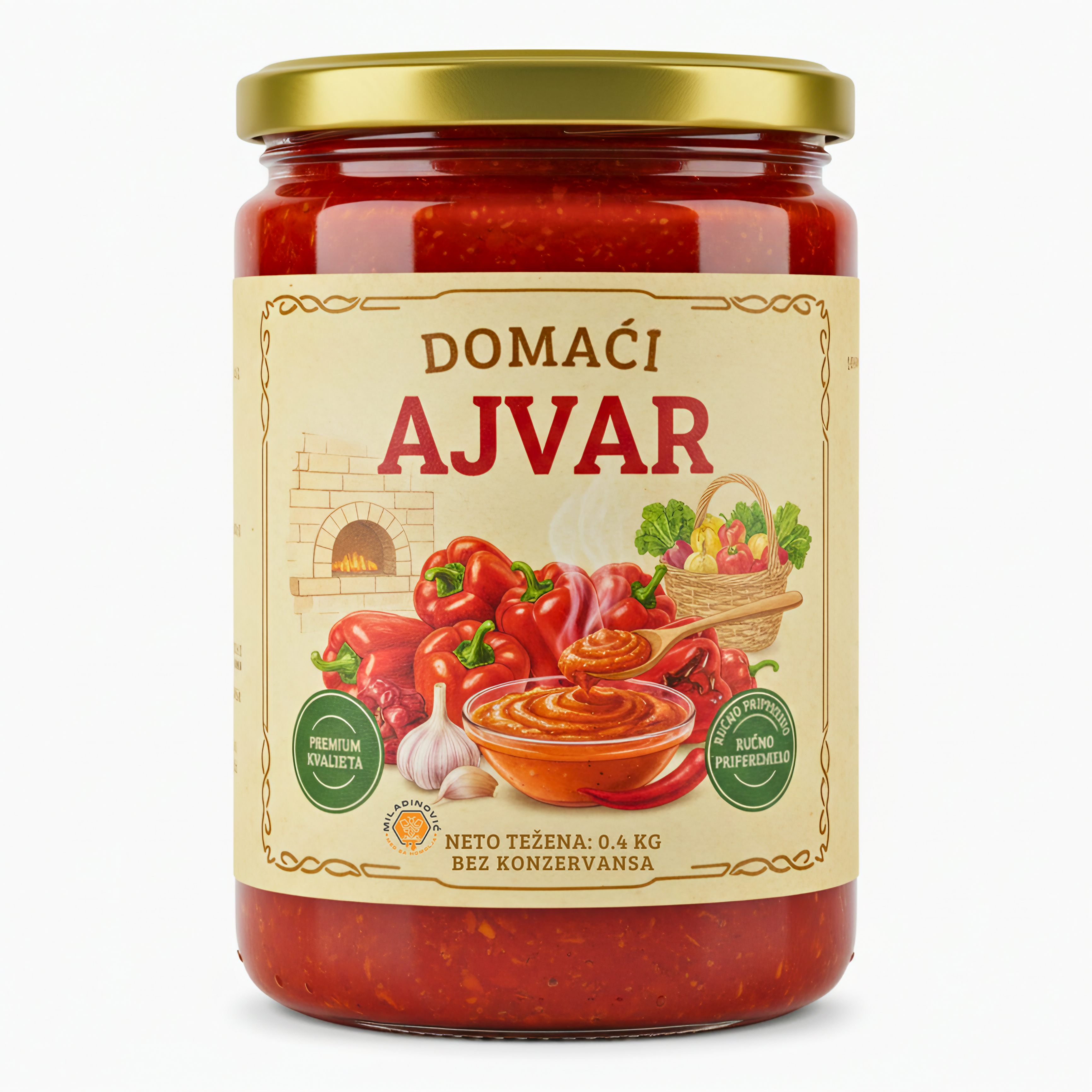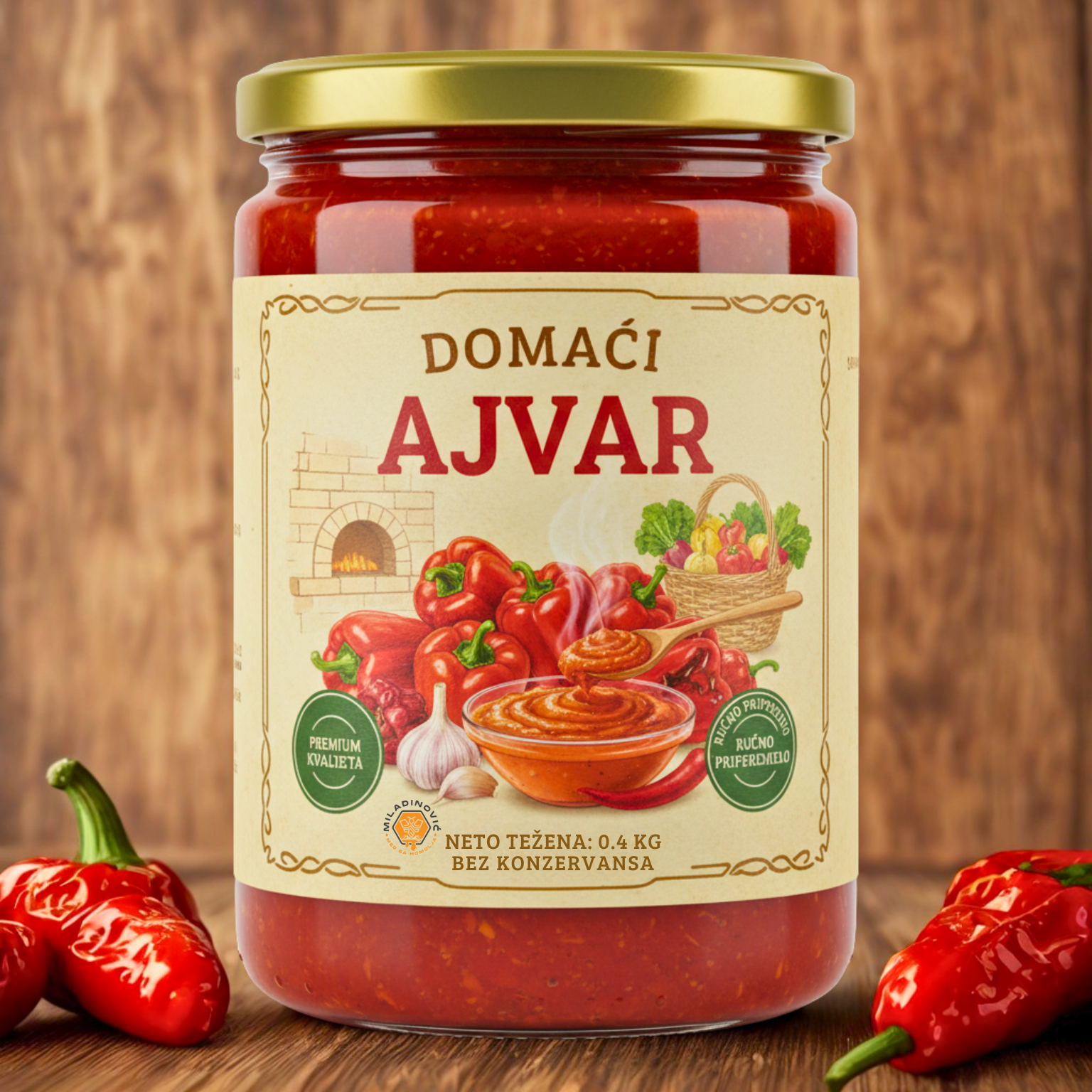 Domaći ajvar je nezaobilazan dodatak svakoj trpezi. Odličan je kao namaz na hlebu, idealan prilog uz roštilj, meso, sireve ili sendviče. Njegova bogata, kremasta tekstura i pun ukus paprike vraćaju nas u detinjstvo i podsećaju na domaće zimnice koje su krasile police naših baka. Upravo taj tradicionalni duh čini naš proizvod posebnim i nezamenjivim.