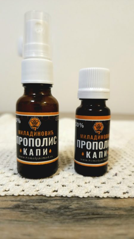Med pčelarske porodice Miladinović služi kao prirodna osnova za pripremu čistog ekstrakta propolisa. Kapi su potpuno prirodne, bez veštačkih dodataka ili konzervansa. Namenjene su deci, odraslima i starijim osobama, uz prilagođenu upotrebu.